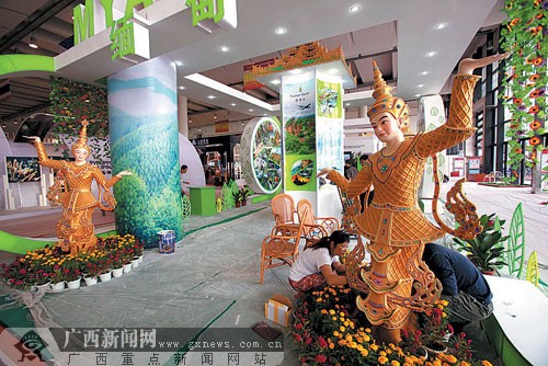 10月20日,随着布展的结束,南宁国际会展中心里除了东盟各国的特色展品外,还有11座“魅力之城”缩放其中,各种肤色的人在“城”里忙碌着。在布展的尾声,记者为读者们打探展馆内的情况,率先呈现多姿多彩的景象。