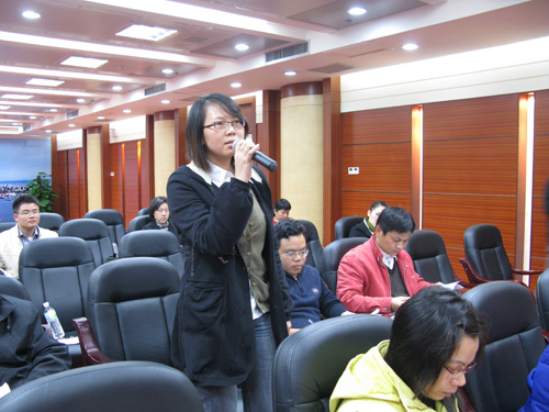 图为中新网记者在新闻发布会上提问。防城港日报图