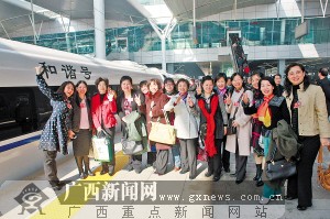 “三八”妇女节里,广西代表团部分代表体验京津高铁