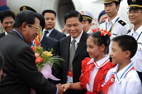 中新社南宁十月二十日电(记者 蒋雪林) 柬埔寨首相洪森二十日中午十二时五分,飞抵广西南宁市,出席将于后天举行的第五届中国—东盟博览会,这将是洪森首相连续五次出席中国-东盟博览会。
