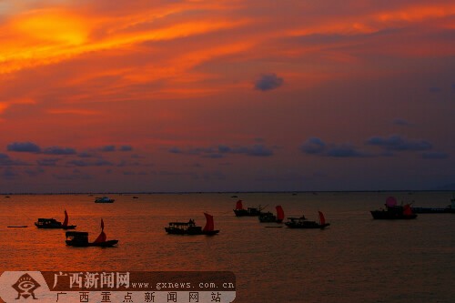连日来的高温天气同样袭击北海市。今天傍晚,在北海市上空,出现了绚丽的火烧云。许多北海市民表示,这样绚丽灿烂的火烧云在北海并不多见。