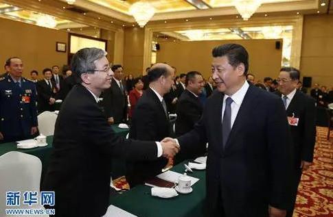 2015年3月4日,中共中央总书记、国家主席、中央军委主席习近平看望出席全国政协十二届三次会议的民革、台盟、台联委员,听取委员们的意见和建议,并发表重要讲话。新华社记者 鞠鹏 摄