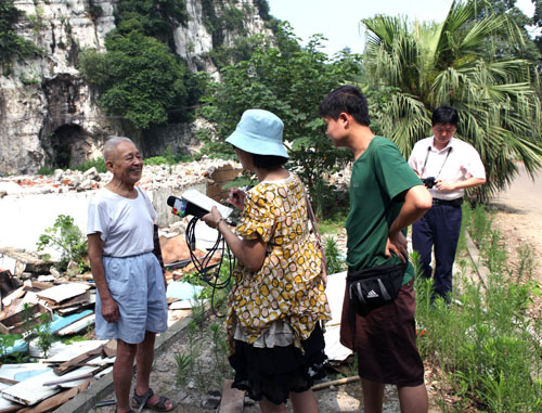 柳州电视台记者在蟠龙山下采访冯晋礼老人,据他回忆蟠龙山一带曾是四十、四十二兵工厂所在地