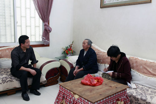 柳州市档案局工作人员到家中采访吴英花(廖文清摄)