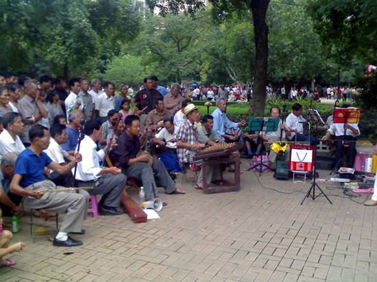朝阳广场是南宁市民众休闲憩息的好场所,不知从什么时候开始,由一班班的民间艺人组成的文艺团体,以丰富多彩的文艺演出来繁荣了南宁市的文化生活,为共同创建和谐的社会主义添砖加瓦。各团体有唱流行歌曲的、唱广东粤曲的。以乐会友,以乐娱人。一首首悦耳的流行歌曲,一曲曲具有浓郁岭南文化的粤曲。不但吸引了一拔拔的听众驻足欣赏,也引来周边市民发烧友前来加盟。