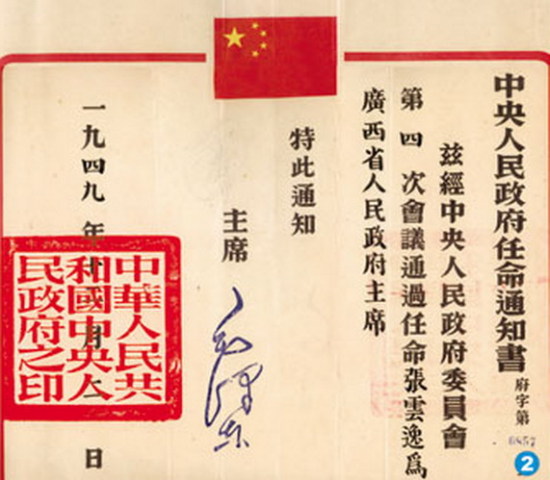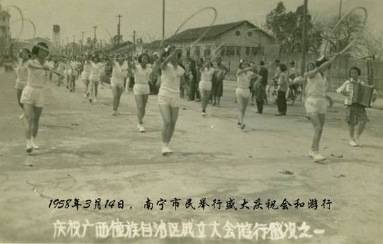 1958年3月5日,广西僮(壮)族自治区第一届人民代表大会第一次会议在南宁隆重召开,宣告广西僮(壮)族自治区成立。中共中央政治局委员、国务院副总理贺龙代表中共中央、国务院到会祝贺。