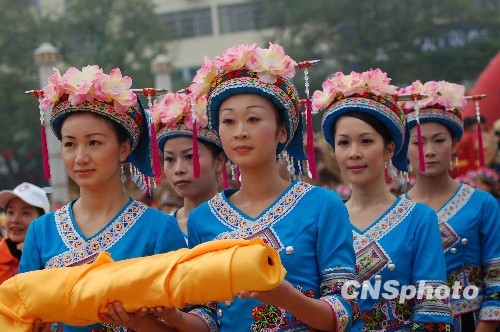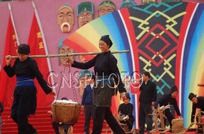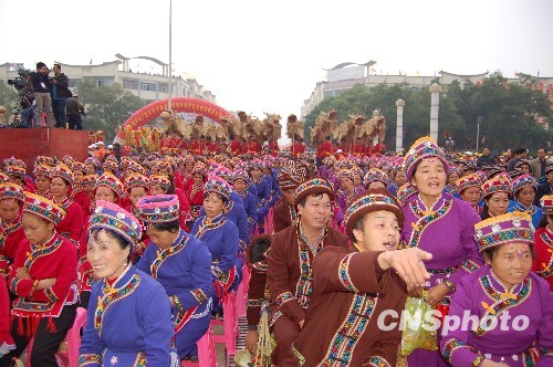 中新社罗城十一月二十八日电(记者 刘万强)中国罗城首届仫佬族依饭文化节二十八日在中国唯一的仫佬族自治县——广西河池市罗城仫佬族自治县开幕,这是仫佬族首次举行大规模“依饭节”。这一仫佬族最盛大的节日顿时使得罗城万人空巷,会场被数万民众围得水泄不通。