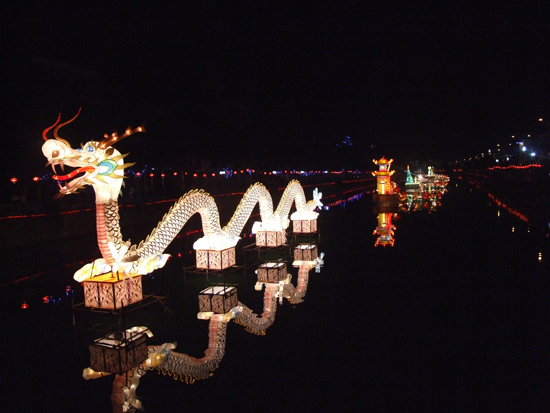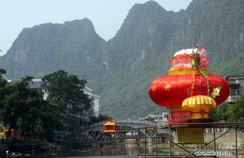 在泗水河县城河段布置花灯展,是凌云县2009年茶文化旅游节的一个亮点,届时,各种造型的花灯将把县城的夜景装扮得绚丽多彩、妖娆迷人,让人仿佛进入梦幻的天上人间境界。(王世勇 摄)