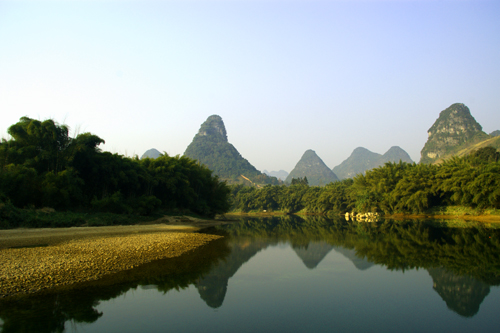 临江河风景区北起样贝乡拉托村畔,南至三江河口与龙江河交汇,河道全长37公里,含下枧、古龙、祥贝三个河段。河水碧绿,山水交融。沿河群山叠翠,古洞罗列。该景区于1988年10月与白龙洞同时列为广西风景名胜旅游区。