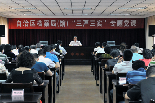 5月18日,自治区档案局(馆)举办“三严三实”专题党课,以局党组书记、局(馆)长黎富文为全体在职党员上党课的形式,全面启动“三严三实”专题教育。