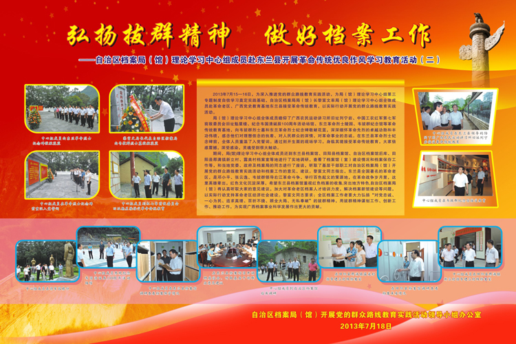 党的群众路线教育板报:弘扬拔群精神 做好档案工作