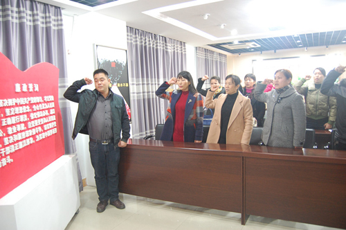 图为县档案局支部党员宣读廉政誓词。