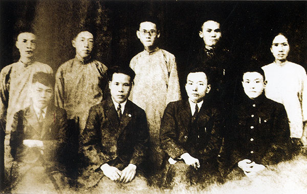 《梧州民国日报》编辑部同仁合影。前排左一为龙启炎,左二为谭寿林,左四为马英。