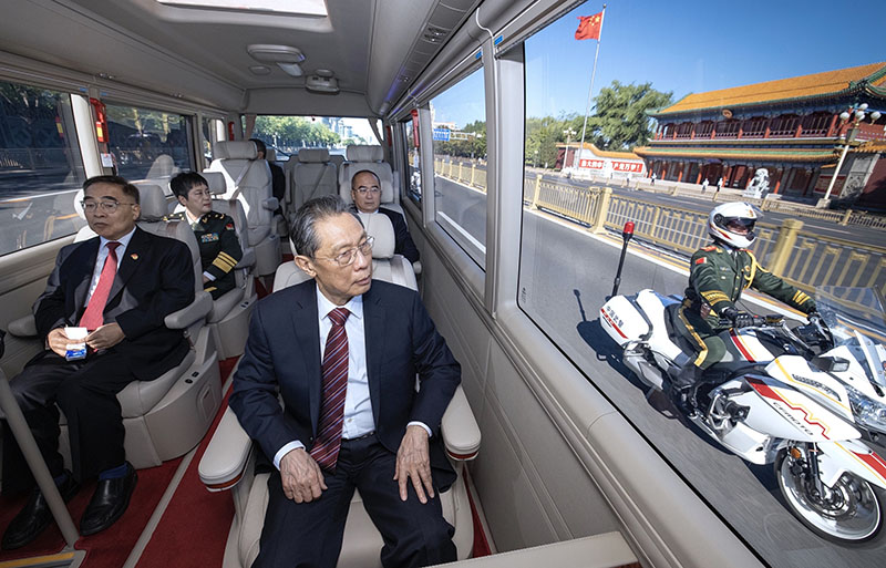 2020年9月8日上午,全国抗击新冠肺炎疫情表彰大会在北京人民大会堂隆重举行。这是国家勋章和国家荣誉称号获得者集体乘坐礼宾车从住地出发,由国宾护卫队护卫前往人民大会堂。新华社记者 刘彬 摄