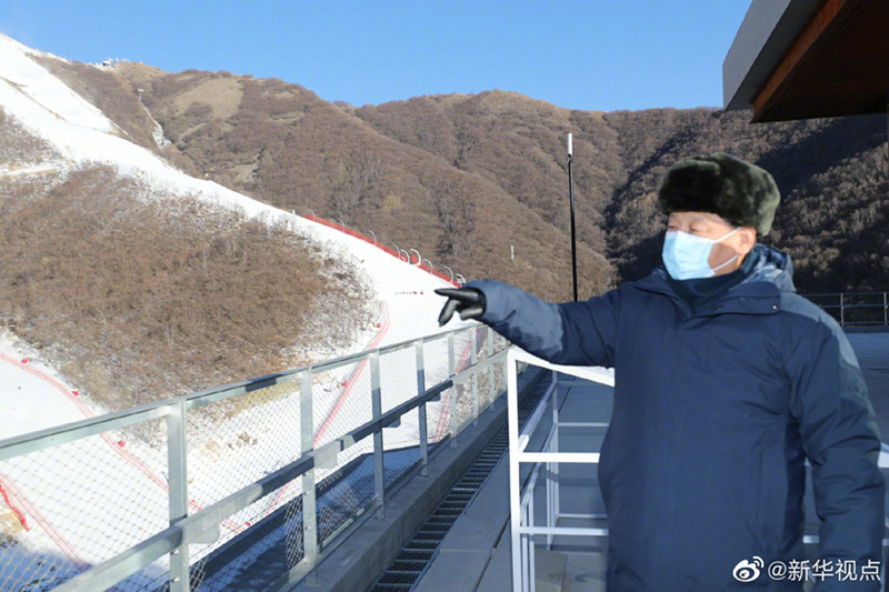 18日下午,习近平总书记来到位于北京市延庆区的国家高山滑雪中心考察调研。在竞技结束区,习近平观看了高山滑雪赛场保障运行和竞技比赛训练情况。习近平指出,体育强国的基础在群众体育。要通过举办北京冬奥会、冬残奥会,把我国冰雪运动特别是雪上运动搞上去,在3亿人中更好推广冰雪运动,推动建设体育强国。临别时,大家齐声高呼:“中国冰雪,加油!”习近平也鼓励大家说:“加油!”(文字记者:张晓松、朱基钗 摄影记者:鞠鹏、王晔、燕雁、岳月伟)