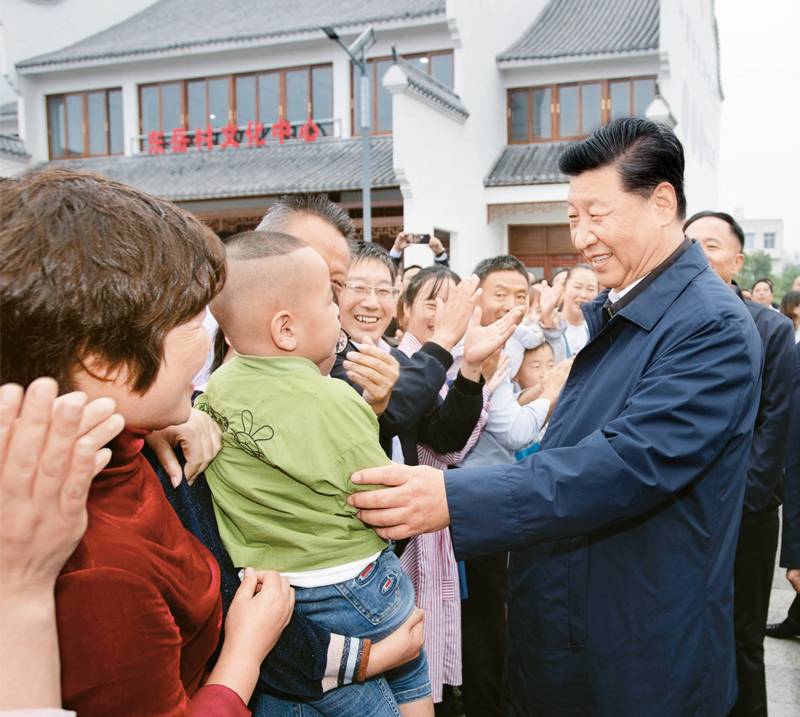 2019年9月16日至18日,中共中央总书记、国家主席、中央军委主席习近平在河南考察。这是17日上午,习近平在信阳市光山县文殊乡东岳村同乡亲们亲切交流,祝愿乡亲们生活芝麻开花节节高。新华社记者 谢环驰/摄