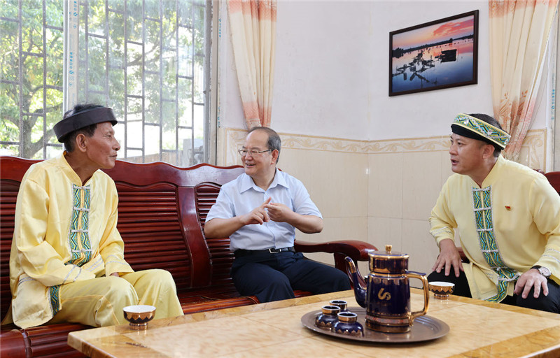 鹿心社走进京族群众刘基民家中了解生产生活情况。黄克/摄