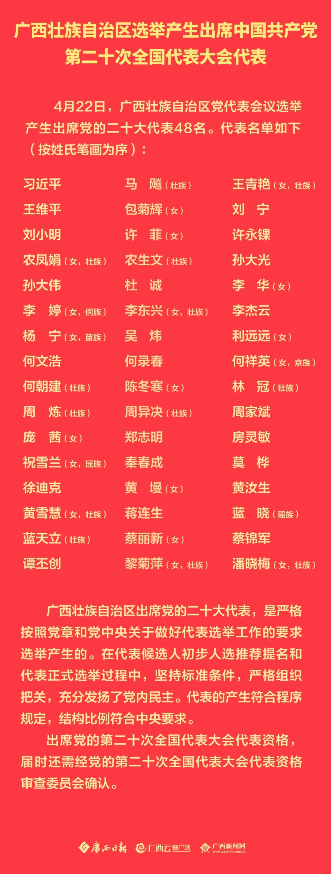 广西壮族自治区选举产生出席中国共产党第二十次全国代表大会代表