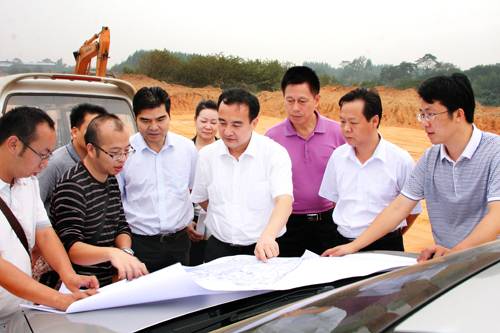 在融水苗族自治县融水镇水东村县城新区建设现场,黎局长一行详细询问了新馆建设规划用地落实情况。中共融水县委副书记兰美清及县属各相关部门就新馆建设筹备工作情况,向督查组作了具体汇报。黎局长对该县工作所取得的进展感到满意,要求县里进一步完善新馆设计工作,为明年的项目落实做好全面准备。