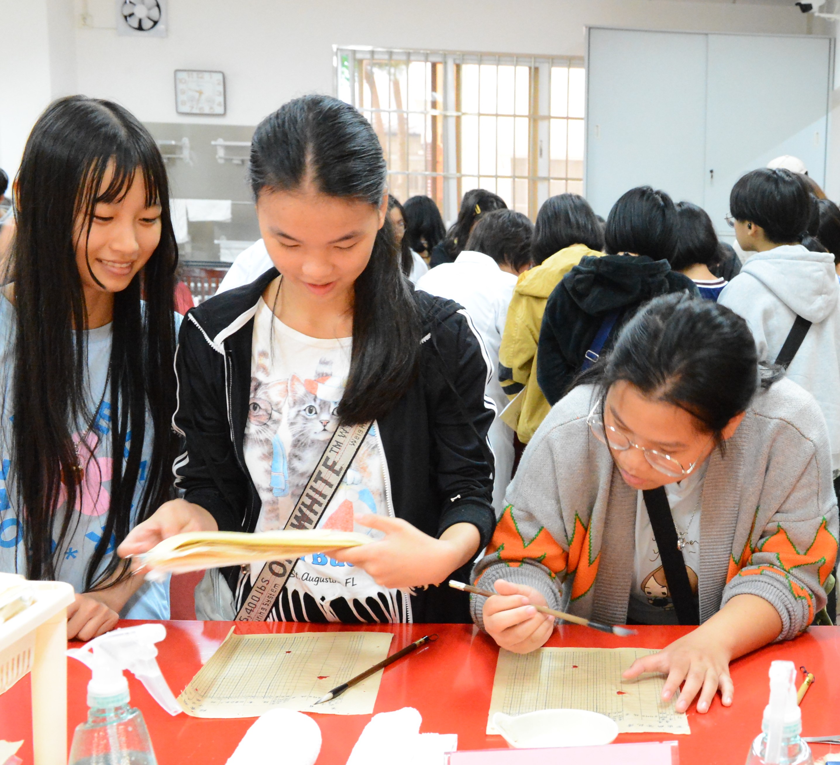参加“工艺讲堂”的学生在学习档案修裱技术