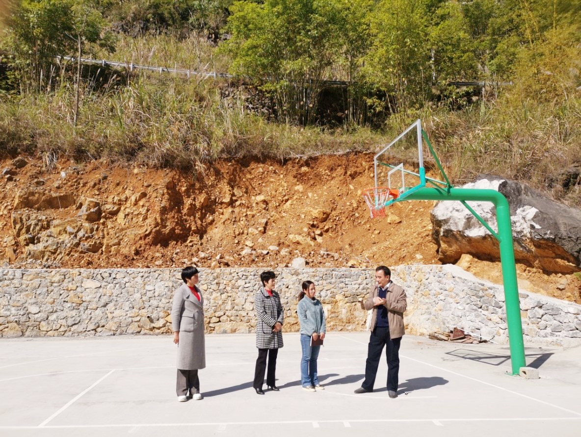 黎富文馆长、覃兰花副馆长查看民新村篮球场项目建设情况