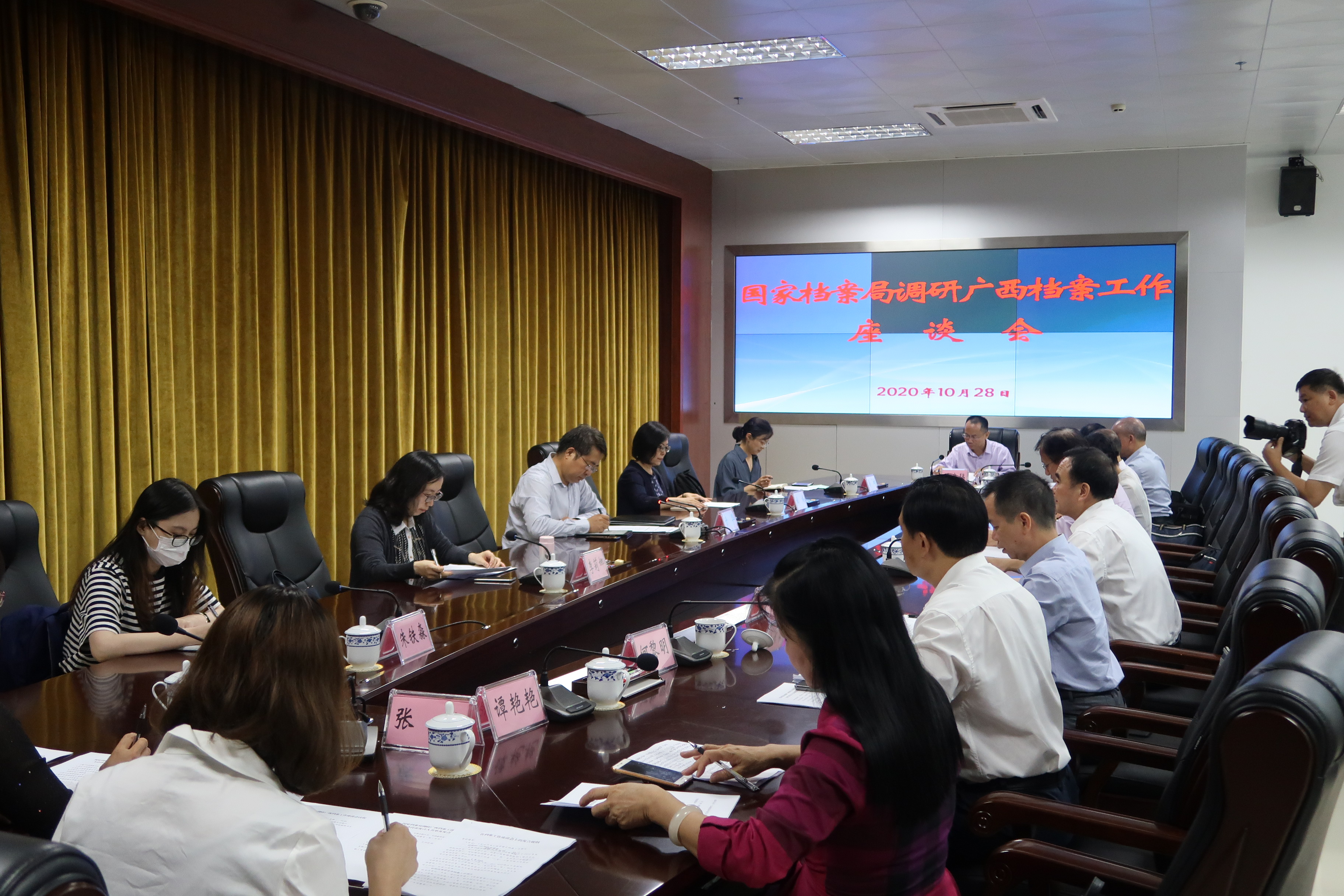 调研组在自治区档案馆召开国家档案局调研广西档案工作座谈会。