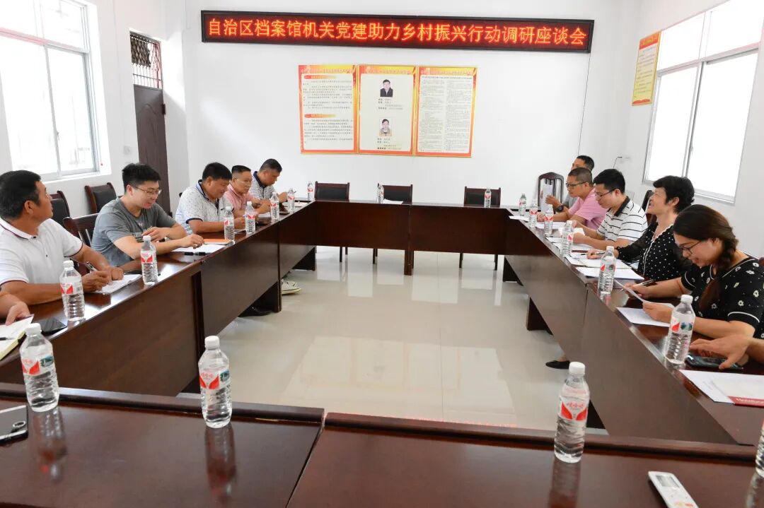 近日,自治区档案馆馆长黎富文、副馆长覃兰花、农民智分别带队到定点帮扶的白山镇民族村、玉业村、民新村就基层党组织在推进乡村组织、产业、人才、文化、生态振兴等方面情况进行调研,并与民族村、玉业村、民新村党总支部开展共建暨“我为群众办实事”主题党日活动。白山镇党委书记黄云飞、镇长邓凤妮分别陪同调研。
