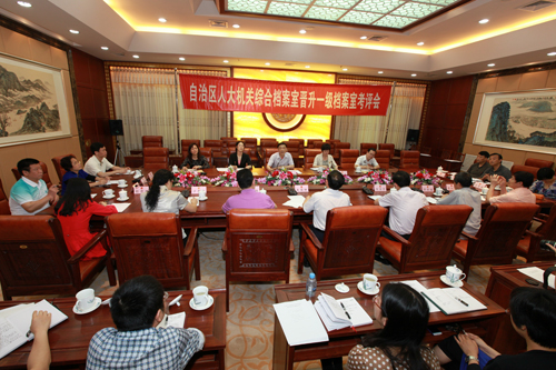 2012年4月18日,自治区档案局局长黄明初带领评审组,对自治区人大常委会机关档案室进行考评,经过听取汇报、实地查看和汇总考评意见,自治区人大常委会机关档案室以97分的优异成绩直接晋升自治区一级档案室。