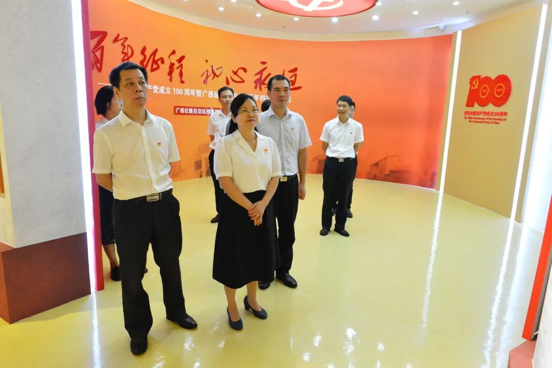 活动一开始,大家一起参观学习了“百年恰是风华正茂”主题档案文献展和“百年征程 初心永恒”——庆祝中国共产党成立100周年暨广西建立组织96周年档案图片展,重温了我们党百年来团结带领人民坚守初心使命,实现从站起来、富起来到强起来的奋斗历史,回顾了广西96年革命和建设的奋斗历程。参观结束后,三个党支部20多名党员集中开展学习交流,研读习近平总书记关于《知史爱党、知史爱国》的重要论述和《在庆祝中华人民共和国成立七十周年大会上的讲话》,3名党员代表围绕主题作学习交流发言,结合各自工作和思想分享了爱党爱国、感恩奋进、建功立业的感想与体会。