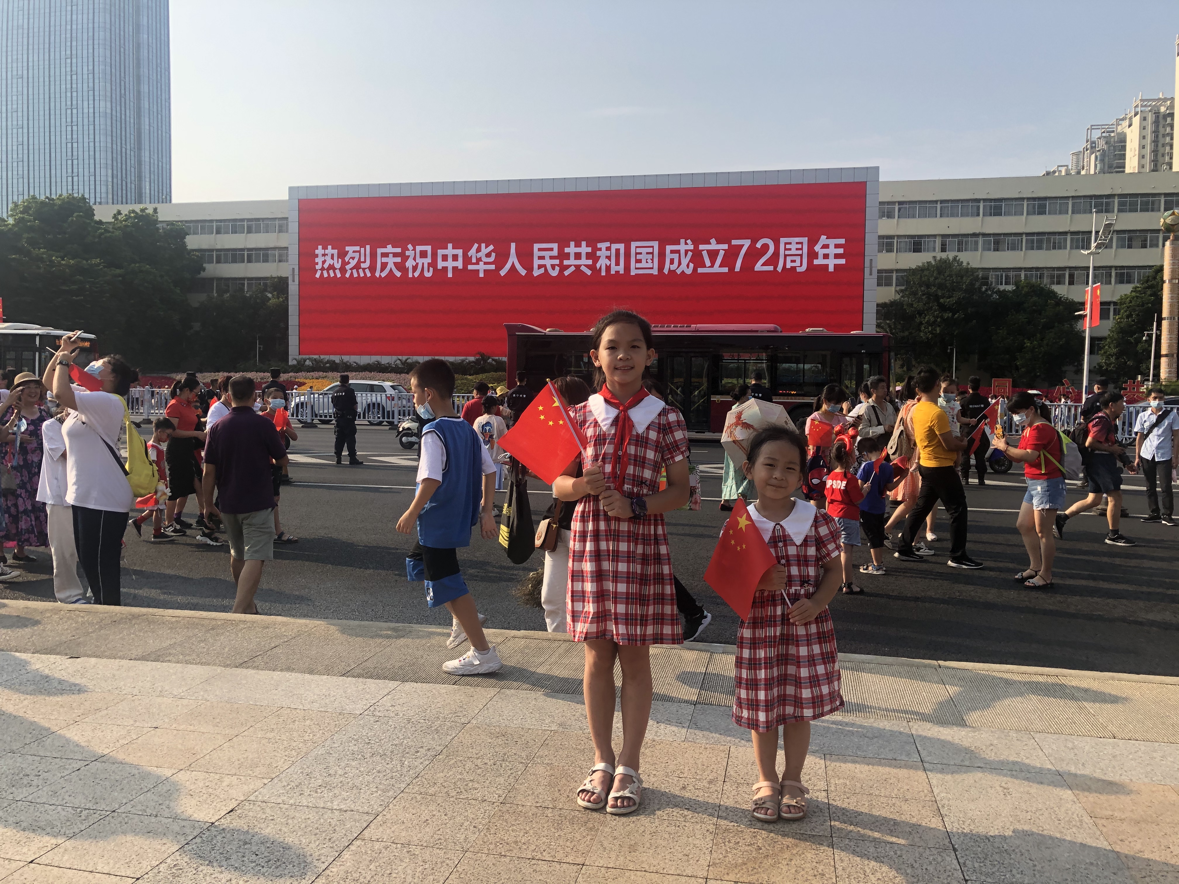 干部职工带领孩子到民族广场参加升国旗仪式