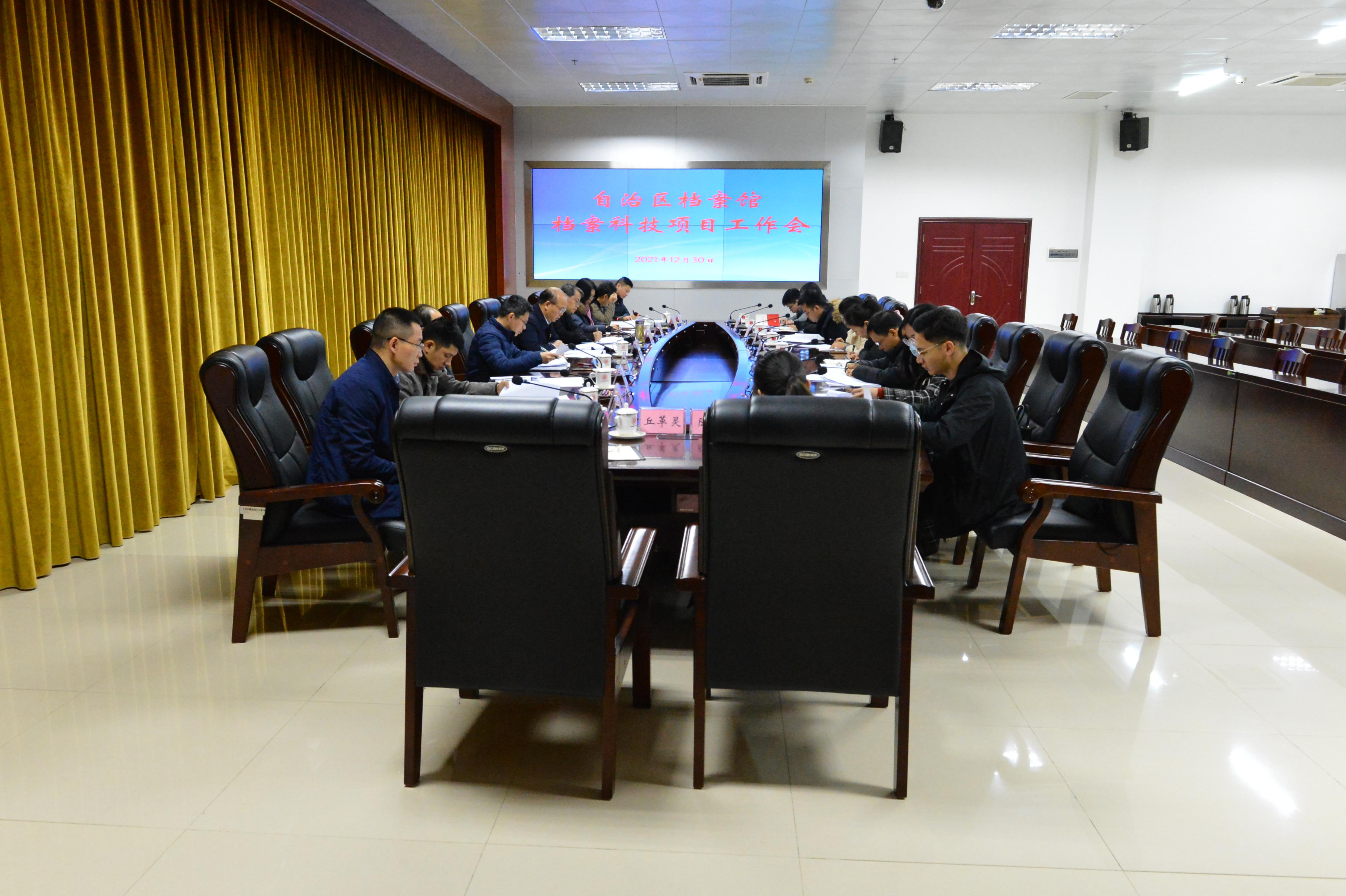 2021年12月30日,自治区档案馆召开档案科技项目工作会议,学习贯彻全国档案科技工作会议精神,总结2021年档案科技工作情况,研究做好已立项项目的推进工作,提前谋划部署2022年国家档案局档案科技项目申报工作。农民智副馆长出席会议并讲话,档案馆科技项目研究工作组及各项目组有关成员参加会议。