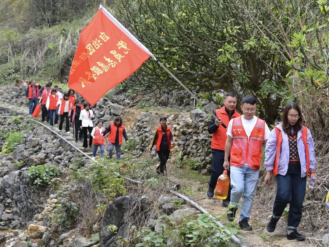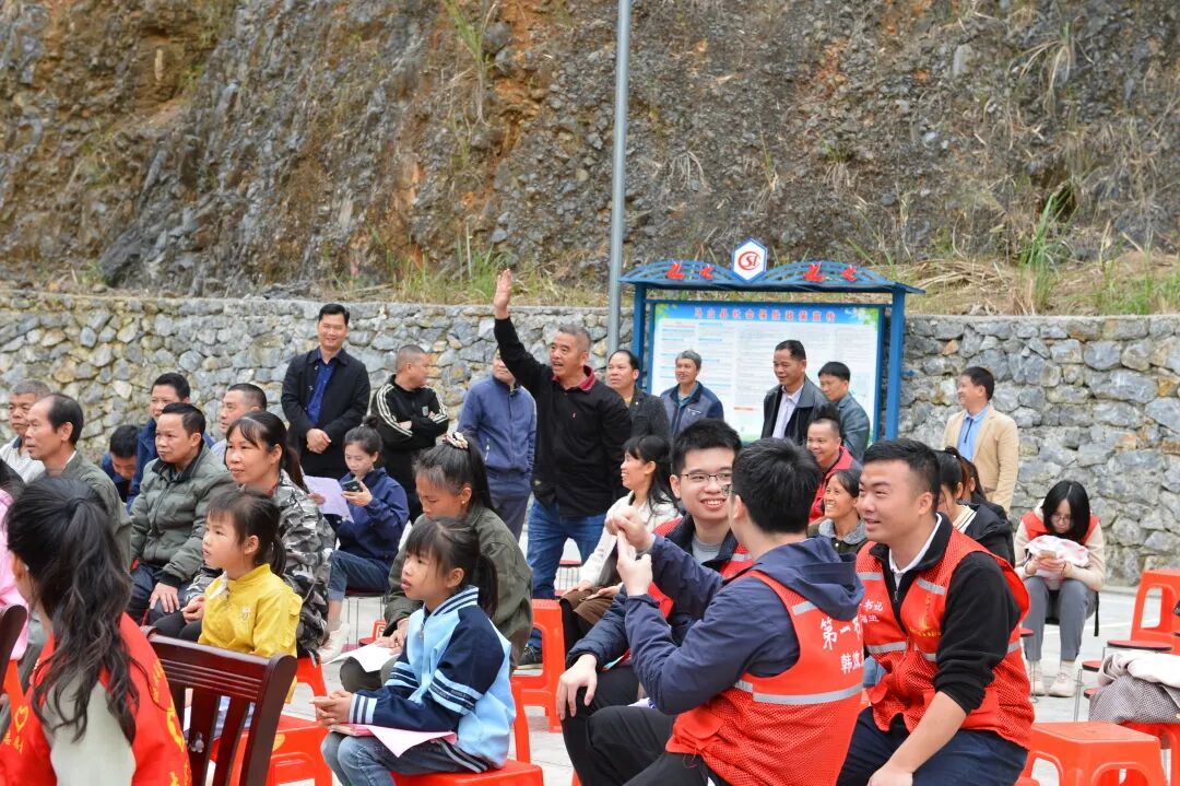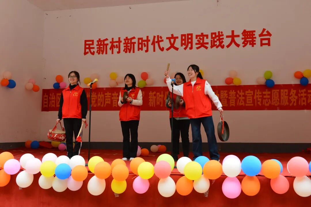 在乡村振兴联系村马山县白山镇民新村,自治区档案馆志愿服务队与驻村工作队员、村委干部,一起组织开展“党的声音进万家”新时代文明实践活动及普法宣传志愿服务活动,以“三句半”“知识问答”等群众喜闻乐见的方式宣传党的二十大精神,乡村振兴政策、档案法相关知识,并结合三八妇女节开展妇女权益保障法的宣传。