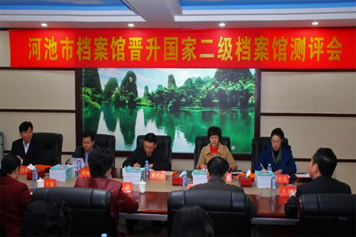 12月21日,以自治区档案局局长黄明初为组长的国家二级综合档案馆测评组,对河池市档案馆进行综合测评。经过综合测评,该档案馆晋升为国家二级综合档案馆。