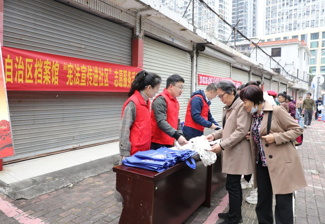 为迎接第10个国家宪法日和第38个国际志愿者日,引导社区居民形成弘扬宪法精神、维护宪法权威的良好风尚,进一步提升社区居民知法、懂法、用法的能力,12月1日上午,自治区档案馆走进联系社区星湖社区,开展“宪法宣传进社区”志愿服务活动。
