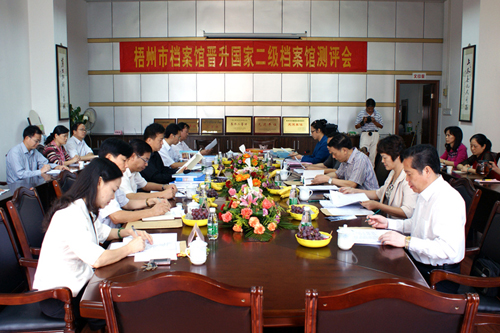 梧州市档案馆晋升国家二级档案馆测评会现场