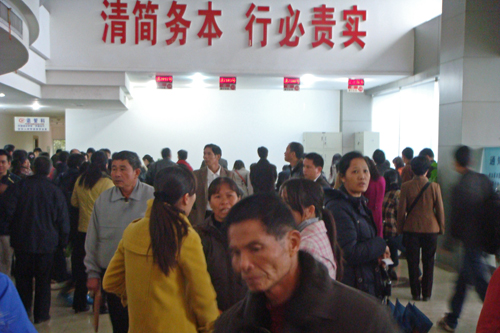 人潮涌动的南宁市人力资源和社会保障局社会保险业务办证大厅