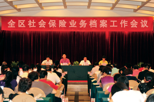 2010年9月27日,自治区档案局与自治区社会保险事业局在南宁联合召开全区社会保险业务档案工作会议。会议提出,要站在“对历史负责、为现实服务、替未来着想”的高度,深刻认识做好社保业务档案工作的重要性和紧迫性,以《广西壮族自治区社会保险业务档案管理暂行办法》和《社会保险业务档案管理达标验收细则》为依据,明确思路、突出重点,抓规范、打基础,加大投入、严格管理,努力实现社保业务档案工作的“四个转变”。