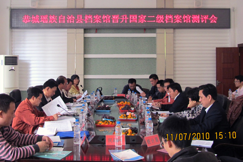 恭城县档案馆晋升国家二级综合档案馆测评会现场