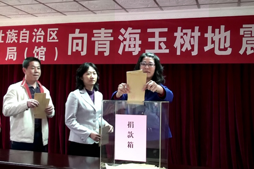 青海省玉树藏族自治州玉树县4月14日发生的7.1级地震灾情牵动着广西档案工作者的心,广西壮族自治区局(馆)干部职工将关注的目光从广西西部旱灾地区转向青海玉树地震灾区。4月27日,局机关党委为落实好中央组织部《关于动员各级党组织和党员干部切实做好抗震救灾有关工作的通知》精神,帮助玉树灾区群众战胜灾害,重建家园,开展了向青海玉树地震灾区捐款献爱心活动。在捐款仪式上,“一方有难、八方支援”的精神再次得到体现,局(馆)领导带头捐款,党员干部职工慷慨解囊,离退休干部党支部、退休职工也闻讯赶来为灾区捐款献爱心。这次活动共收到捐款10200元,这是局(馆)党员干部职工本月继抗旱救灾捐款后的又一次爱心捐助。(文 机关党委/图 蒙斌)