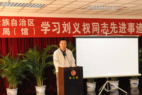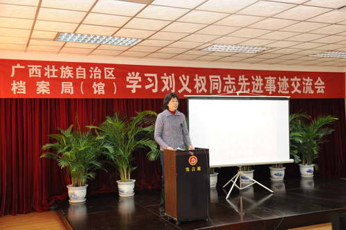 2009年12月28日,广西壮族自治区档案局(馆)召开学习刘义权同志先进事迹交流会。副局(馆)长、机关党委书记史博主持会议,党组书记、局(馆)长黄明初对继续深化向刘义权同志学习活动提出要求。