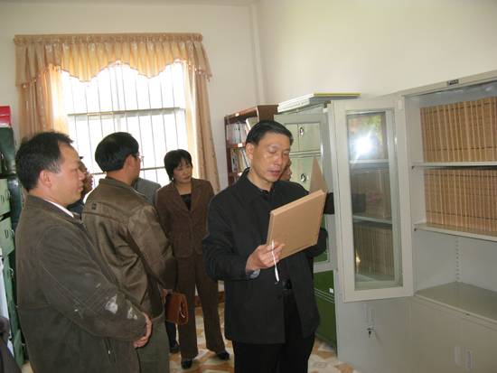 在检查乡镇、村级建档情况时,针对部分村档案材料收集不全、保管条件差等问题,黄局长强调,要采取措施,切实做好档案的收集、整理、保管等工作,尤其要重点抓好农村土地山林承包合同档案、土地流转合同档案、农村宅基地档案、农村养老保险档案、农村新型合作医疗保险档案、村务公开和农村基层组织换届选举档案等收集工作,要加强指导,规范整理,积极探索村级档案的保管方式,可采取“村档乡管村用”模式进行管理,让这些涉及老百姓切身利益的民生档案得到妥善保管并发挥应有作用,造福社会,造福人民。