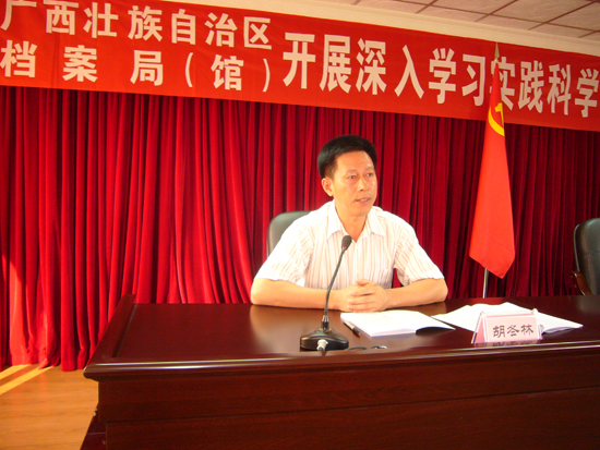 会上,黄明初深刻阐述了深入开展学习实践科学发展观活动的现实背景和重大意义。指出,深入学习实践科学发展观,是在深刻变化的国内外形势下,抓住机遇、应对挑战,推动我区科学发展、加快发展、跨越发展的需要,推进广西档案事业科学发展的需要,是在新的历史以改革创新精神加强党组织建设的需要。要求局(馆)党员干部职工一定要按照中央和自治区党委的部署和要求,以这项活动为契机,进一步解放思想、改革创新,切实增强贯彻落实科学发展观的自觉性和坚定性,着力转变不适应、不符合科学发展观的思想观念,着力解决影响和制约广西档案事业科学发展的突出问题以及党性党风党纪方面存在的突出问题,努力构建有利于档案事业科学发展的体制机制,提高自身的能力和水平,使档案工作更加符合科学发展观的要求,不断推动档案事业又好又快发展,为把广西建设成为国际区域经济合作新高地和中国沿海经济发展新一极做出新的贡献。