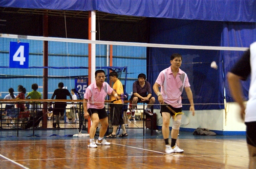 自治区档案局羽毛球代表队男子双打比赛