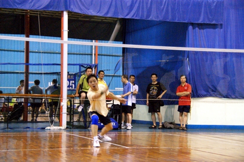 自治区档案局羽毛球代表队男子单打的英姿