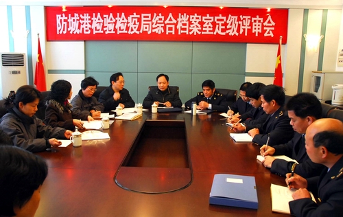 图为防城港检验检疫局综合档案室晋升一级档案室评审会场