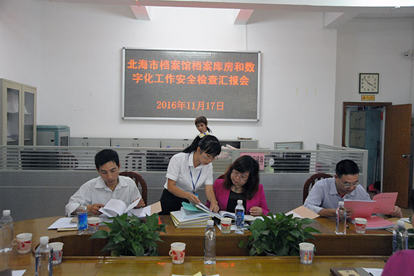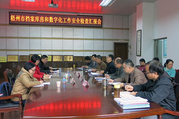 检查组听取梧州市档案库房和数字化工作安全情况汇报