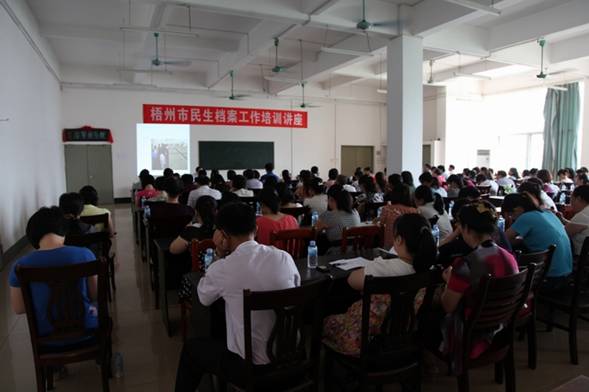 此次培训讲座,是梧州市“国际档案日”系列宣传活动之一,也是梧州市档案部门实施提高干部队伍素质的“五个一工程”(开展一个专题讲座、开展一对一谈心谈话、开展一个业务学习交流、开展一次内部岗位交流、开展一系列竞赛活动)全面提高干部队伍素质的一项具体行动。梧州市档案局(馆)全体干部职工、各县(市、区)档案局分管业务工作的领导和相关的业务人员、市各单位的专职或兼职档案员160多人参加了讲座。