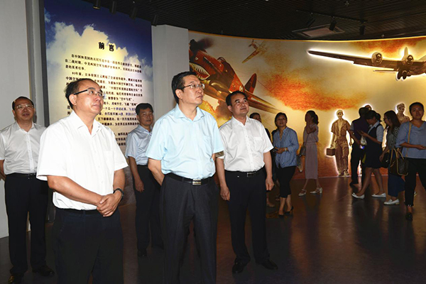 长黎富文(前排右)等领导参观《飞虎传奇——中美空军抗战档案图片展》