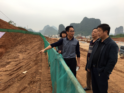 图为桂林市档案局局长奉世江(右1)一行实地查看阳朔县档案新馆项目建设情况