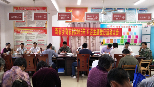 2018年4月24日上午,贵港市档案局挂点村港北区奇石乡奇石村党总支举行4月主题党日活动,活动由市档案局派驻奇石村第一书记覃伟同志和村支书主持,奇石村三个支部共约40名在家党员参加了活动。这次主题党日活动的主题是:缅怀革命先烈,传承红色基因。通过到奇石中秋起义纪念碑重温入党誓词,听讲解,进一步增强党员干部爱党爱国意识,激发爱党爱国情感,牢记和弘扬革命精神,继承先辈遗志,不忘初心,牢记使命,增强党员宗旨意识和党性修养,提升奇石党总支的凝聚力和战斗力。